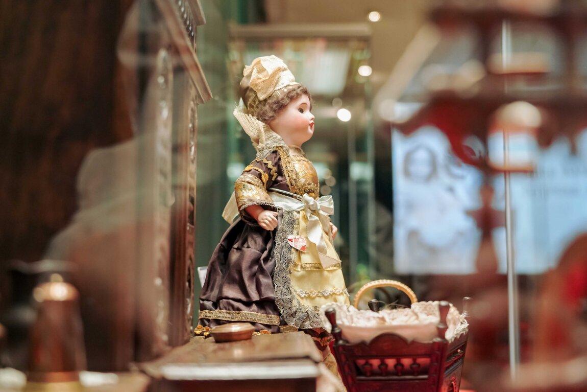 На экскурсии по выставке «Мир куклы. Игрушки, аксессуары и куклы XIX–XX веков из собрания Музея уникальных кукол» участники окажутся в мире детства, где будет интересно не только детям, но и взрослым. Участники узнают историю кукольного искусства, познакомятся с бытом кукол — кукольные домики, одежда, аксессуары, и какие были традиции игрушечного мира XIX века.