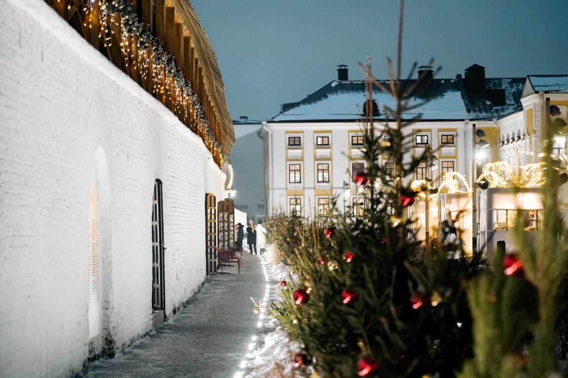 Традиционная новогодняя елка высотой 17 метров украшает двор Присутственных мест. Также здесь представлены точки питания. Угощать посетителей будут «Бульонная», «TLAB», «Тат хот», «Алан Аш», «Блины и чуррос», «Хот доги», а в Пушечном дворе – «Трдельник», «Согревательная», «Хот доги», «Кофемолка».