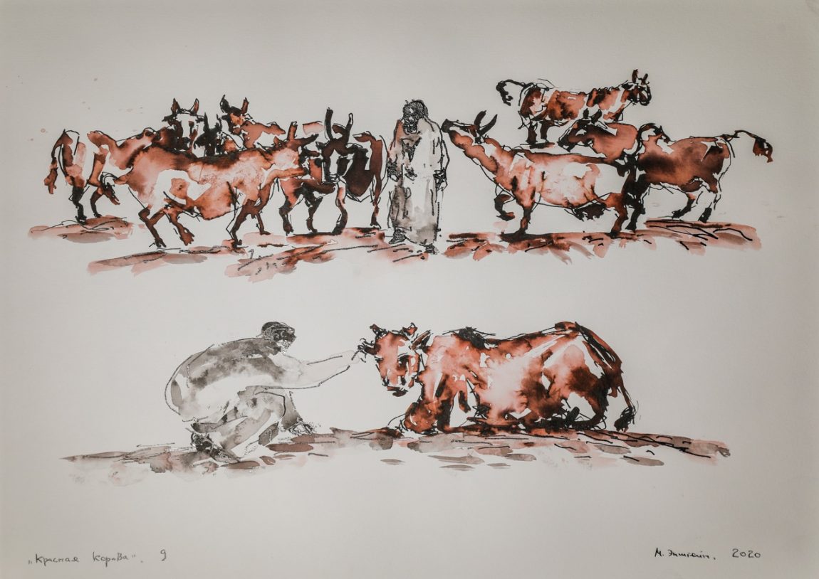 Макс Эпштейн представляет серию «Красные коровы». Красные коровы, жертвенные животные Иудейского храма, и люди в рисунках автора абстрактны, символичны, как текст на иврите. В пастельных работах мастера боевых искусств и каллиграфа Джамала Ажигирея сквозным элементом выступают человеческие руки, как инструмент и способ человеческого действования. Работы построены на символах и метафорах. Татьяна Ваганова, дизайнер и педагог из Майкопа, использует самый бесхитростный материал – бумагу и карандаш – для того, чтобы показать, что заповеди, правила жизни в принципе просты и понятны. Несмотря на условность работ, христианские заповеди, легшие в основу западной цивилизации, легко считываются.