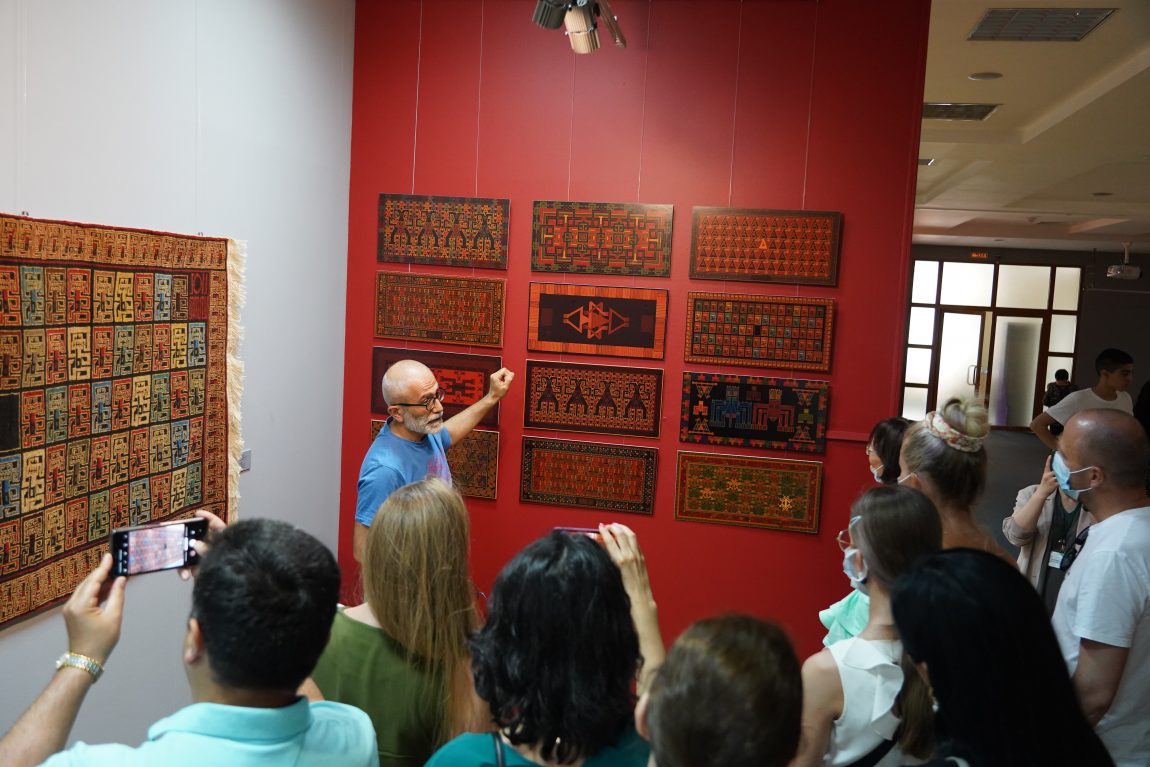 Наравне с традиционными коврами, на выставке представлены авторские ковры современного художника Чингиза Бабаева, которые оппонируют классическим произведениям, вступая с ними в диалог, преодолевая тем самым расстояние и время.