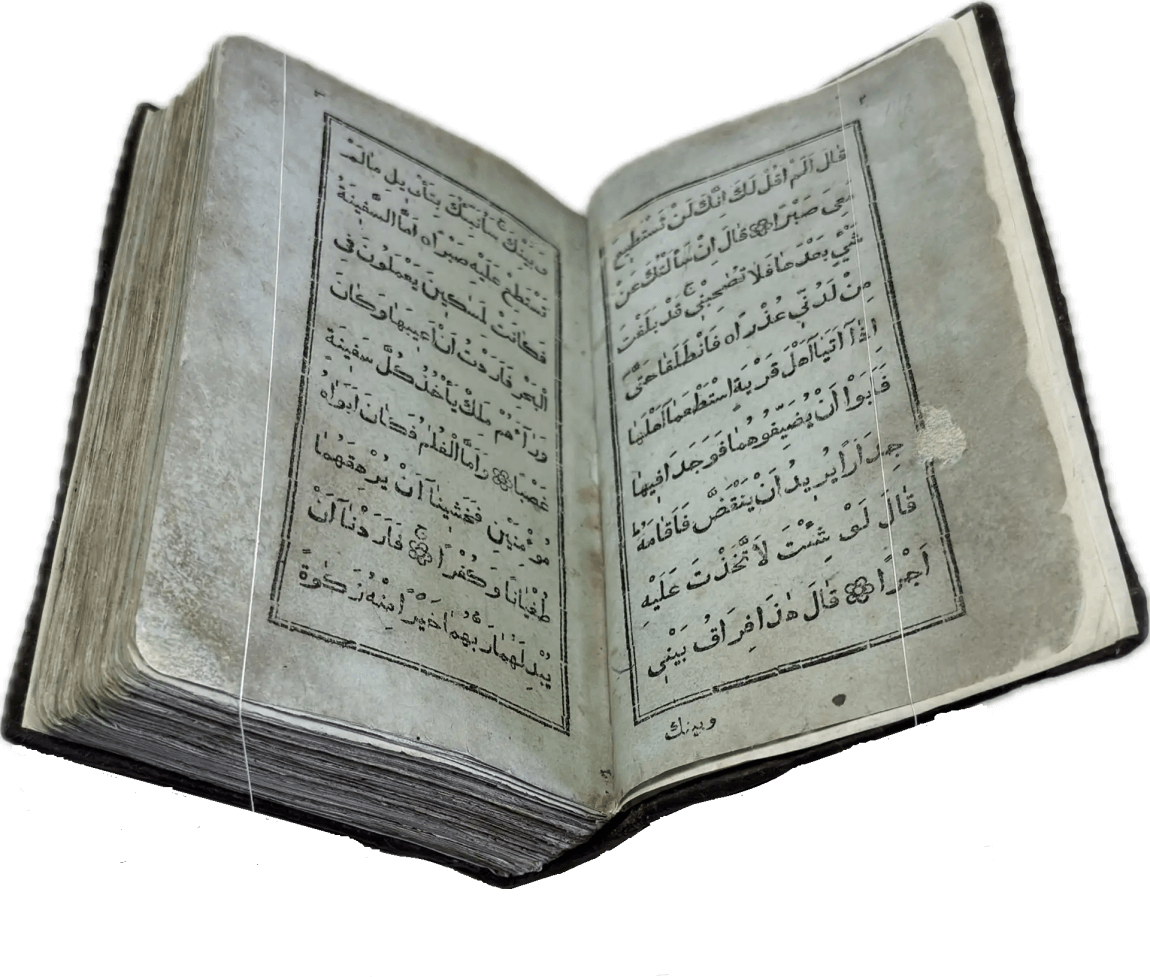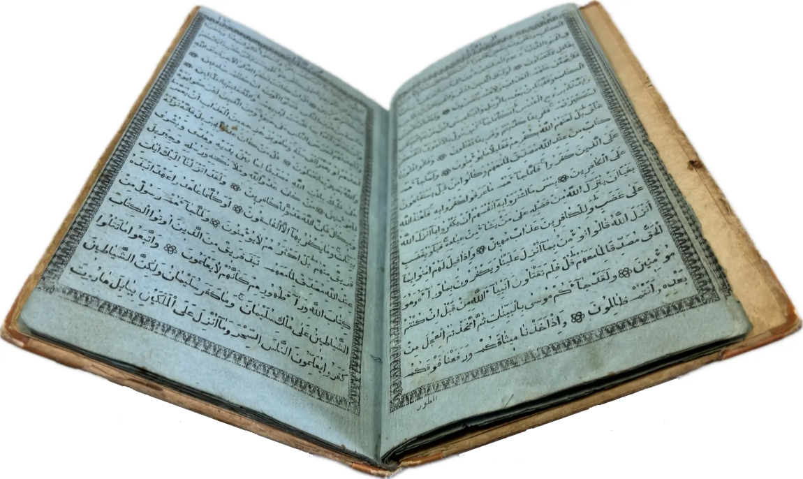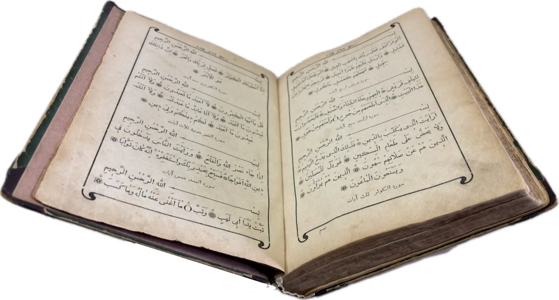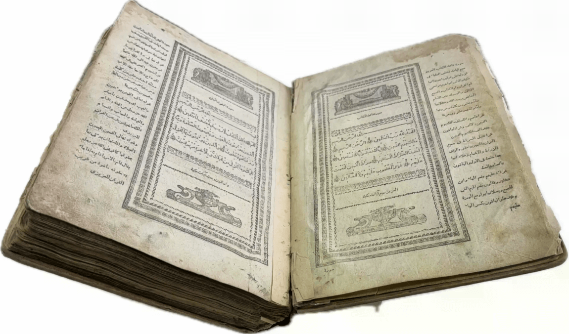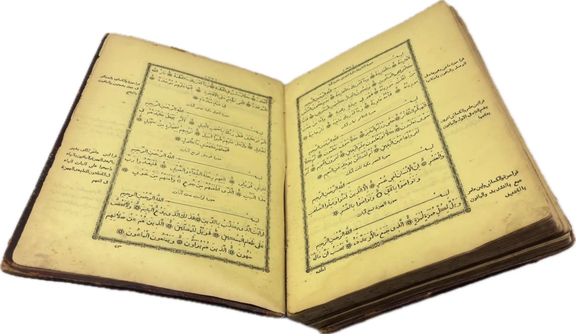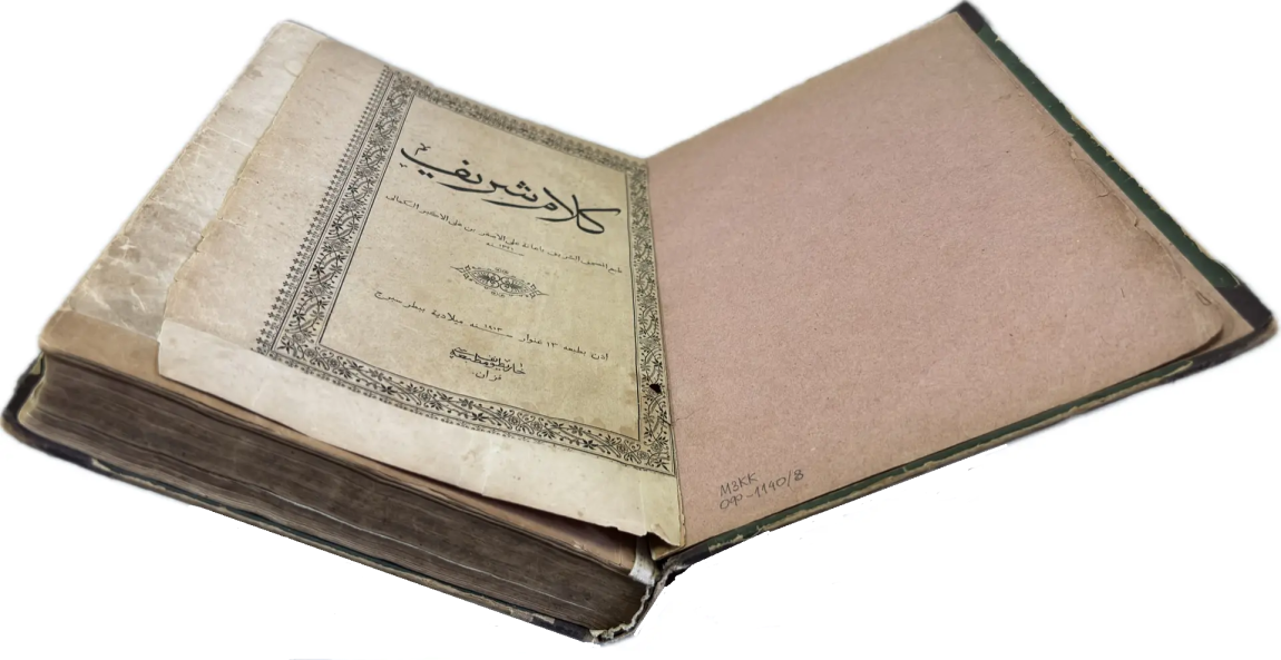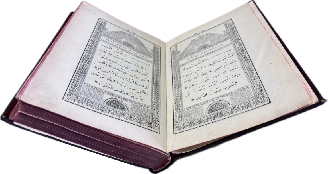 Перед вами Коран, вышедший в типографии Ивана Николаевича Харитонова, которого называли татарским Гутенбергом за высокое качество печати, совершенствование арабских шрифтов и художественное оформление изданий. Также изданием Корана в Казани в разные годы занимались типографии Императорской Казанской гимназии и Императорского Казанского университета, Н.П. Коковина, С.М. и М.А. Чирковых, Л. Шевица, Г.М. Вечеслава, Б.Л. Домбровского, братьев Каримовых, И.Н. Харитонова, «Умид» и др.