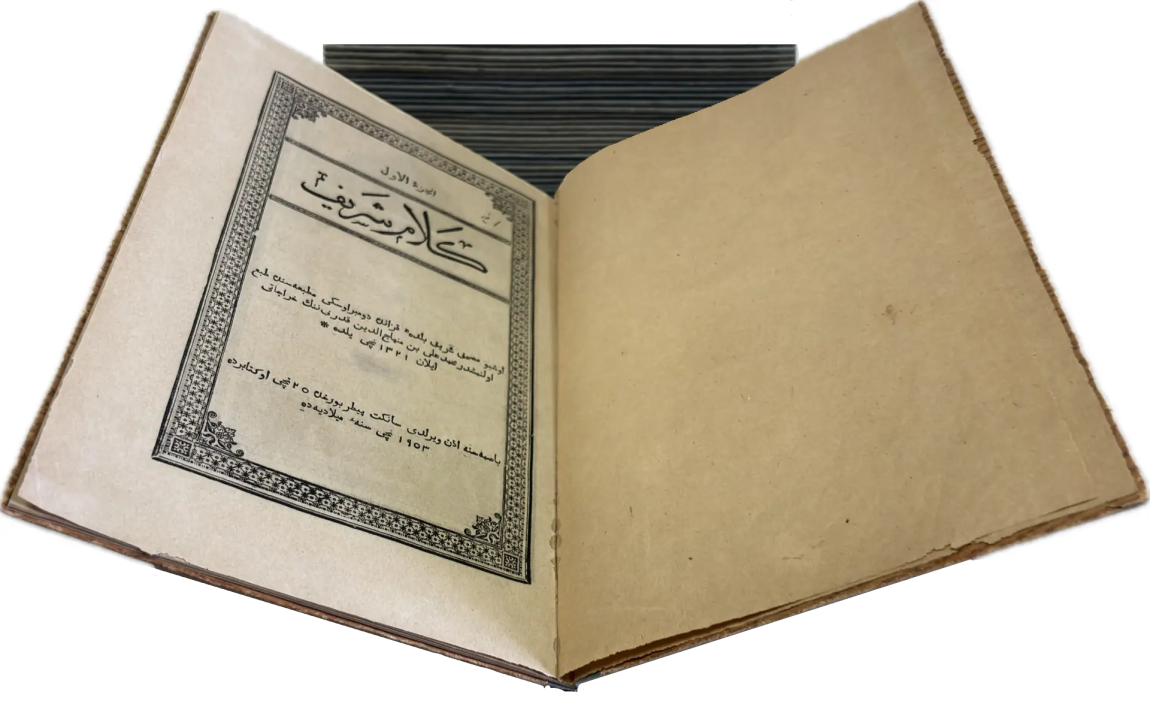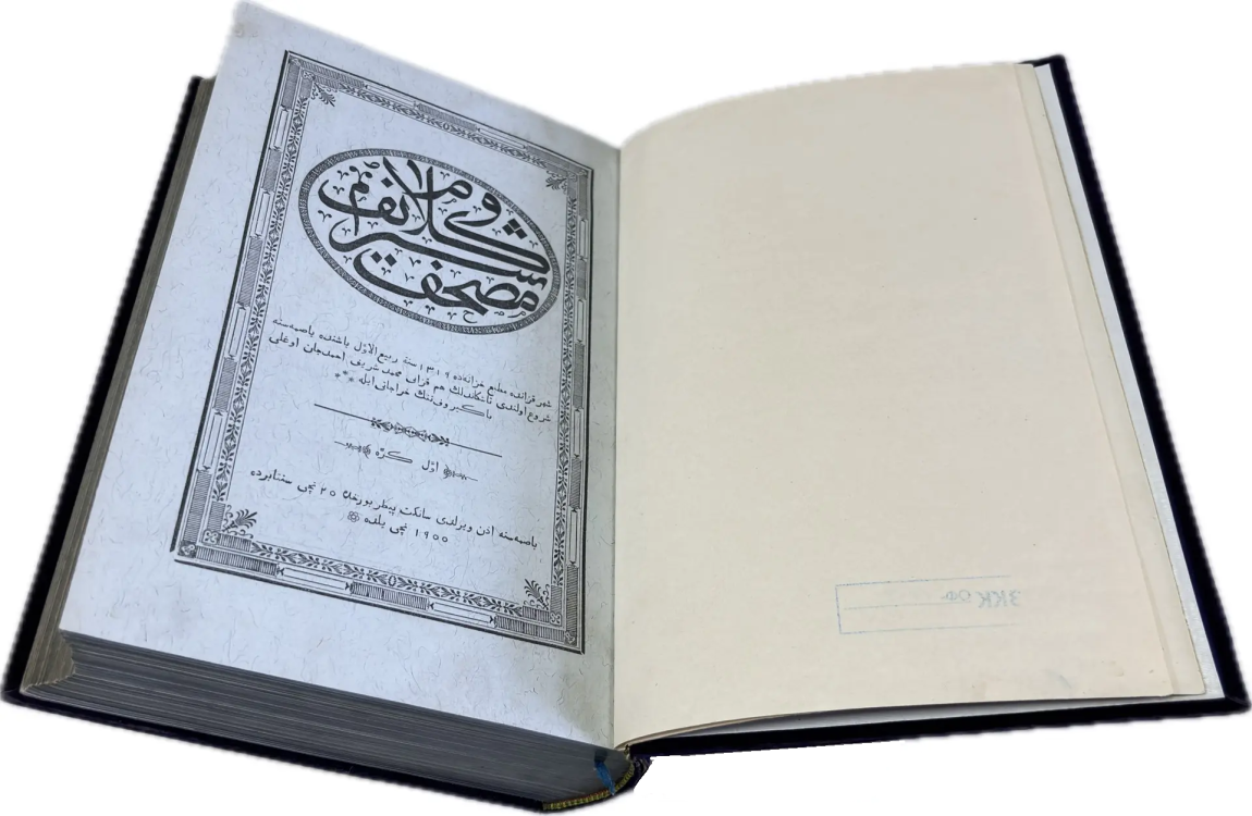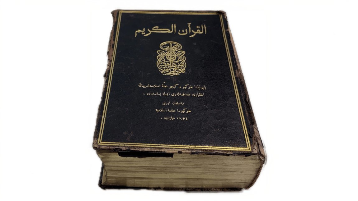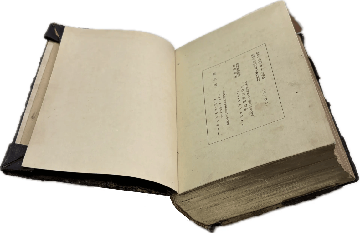 Представляем вашему вниманиюТокийский репринт – первый печатный Коран, изданный в Японии на языке оригинала. Он был напечатан в 1934 году на средства татаро-башкирских общин Токио, Киото и Сеула. Книга представляет собой копию Корана, изданного в Казани в 1913 году. Репринт готовился при участии Габдулхая Курбангалиева, имама-мударриса и первого лидера татарской общины Японии (1889-1972). На титульной странице надпись от руки коричневыми чернилами  арабской графикой на татарском языке:  «Ахмед Апанаев купил этот Коран в 1940 г. за 10 йен в Мусульманской ассоциации Великой Японии».