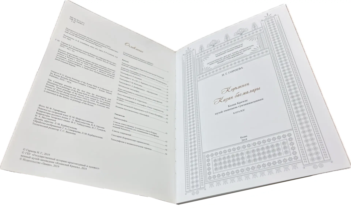 Музей-заповедник «Казанский Кремль» продолжает собирать, изучать и популяризировать казанские издания Корана. Итогом многолетнего изучения стал выпуск каталога «Казанские издания Корана из собрания Музея-заповедника «Казанский Кремль» Н.Г. Гараевой. В подготовке виртуальной выставки использовались материалы каталога.