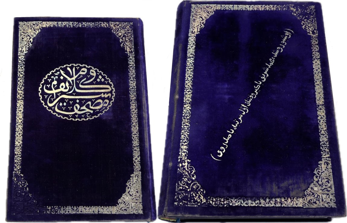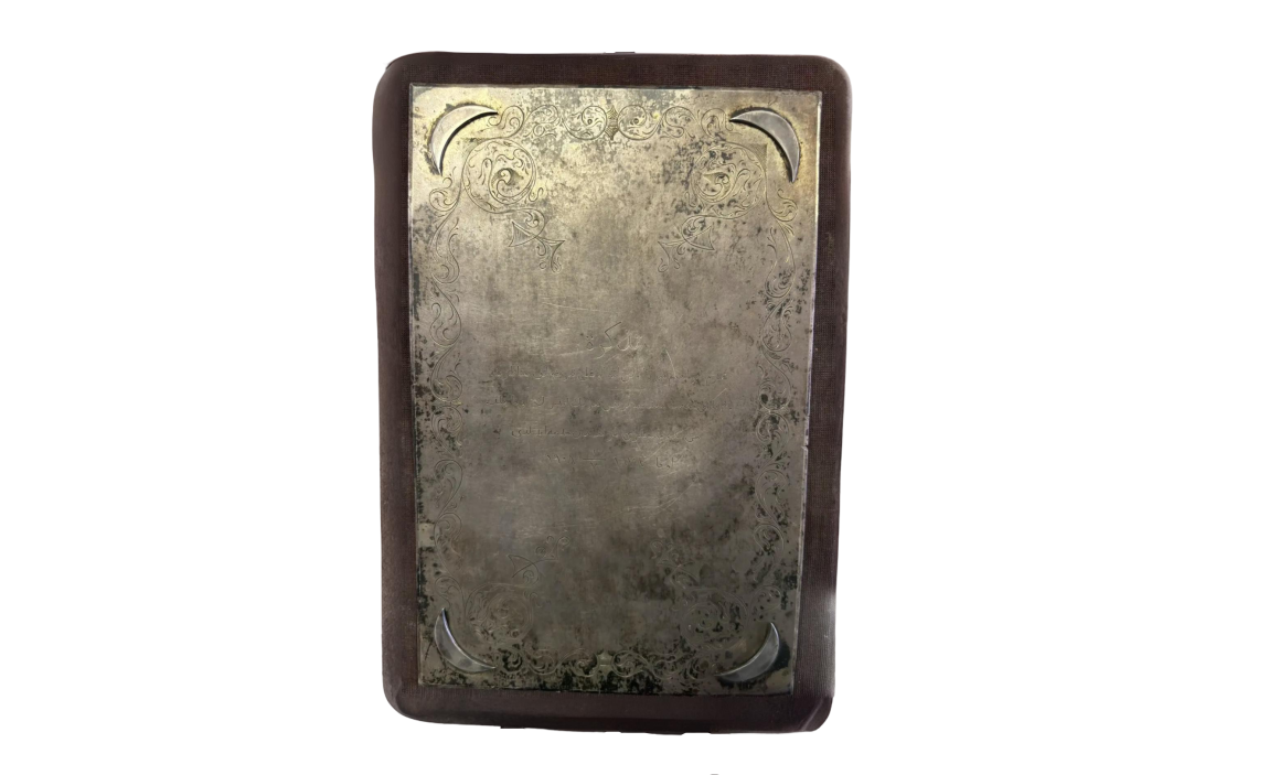 Книга переплетена в переплётной мастерской Луцкого в Казани, об этом говорит оттиск штемпеля синими чернилами на татарском языке на внутренней стороне обложки. Обложка обтянута бархатом.