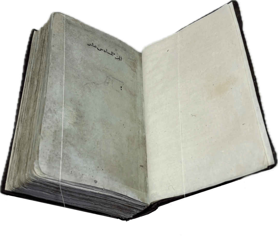 Перед вами шестой том из 10-ти томного, так называемого «детского» издания. Книга напечатана на мануфактурной бумаге голубого цвета. Десятитомник предназначался специально для детей и являлся первым подобного рода изданием Корана. Эта серия была издана в малом формате (то есть в уменьшенном размере). Этот Коран был напечатан тиражом 1000 экземпляров единожды. Сведений о дополнительных тиражах и изданиях подобного рода у исследователей нет.