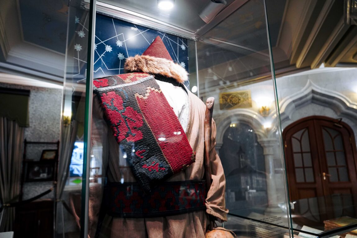 В основе выставочного проекта – археологическая, этнографическая и художественная коллекция Музея-заповедника «Азрет Султан» (Республика Казахстан, город Туркестан). Уникальные артефакты знакомят с древним городом – оазисом на Великом Шелковом пути. Здесь в XII веке создает свои поэтические и философские шедевры Ходжа Ахмед Ясави – личность, равнозначимая для духовной культуры как татарского, так и казахского народа.