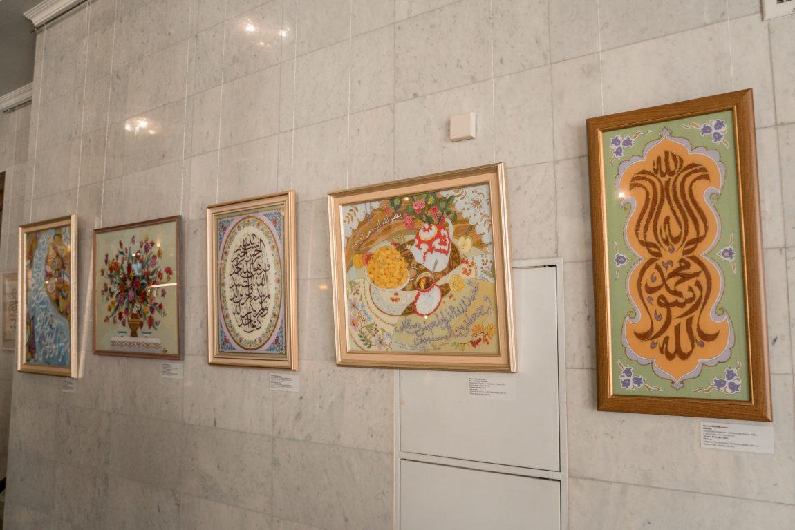 В работах Альфии Исхаковой и Чулпан Шарифуллиной проявляется национальное своеобразие в художественном восприятии мира. Каждая деталь, цитата, цветовое решение работают на раскрытие религиозных и философских позиций авторов. Кроме шамаилей, традиционно выполненных на стекле, на выставке представлены каллиграфические композиции на холсте и бумаге с цитатами из Корана и высказываниями пророка Мухаммеда.