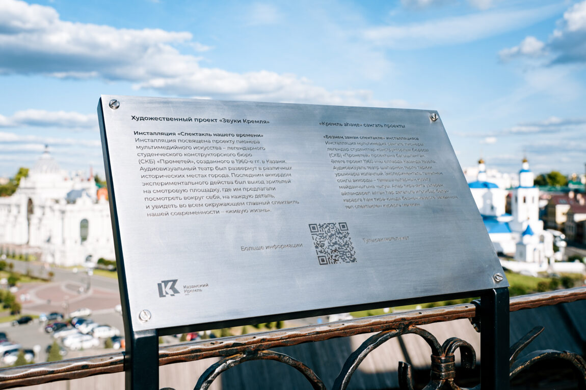 Звуковые инсталляции, наполняющие территорию Музея-заповедника «Казанский Кремль», окликают современность из прошлого, вторят пестрому многоголосию истории. Раздающиеся из разных исторических эпох, звуки оживляют калейдоскоп событий, раскрывают судьбу казанского Кремля в перипетиях времени.