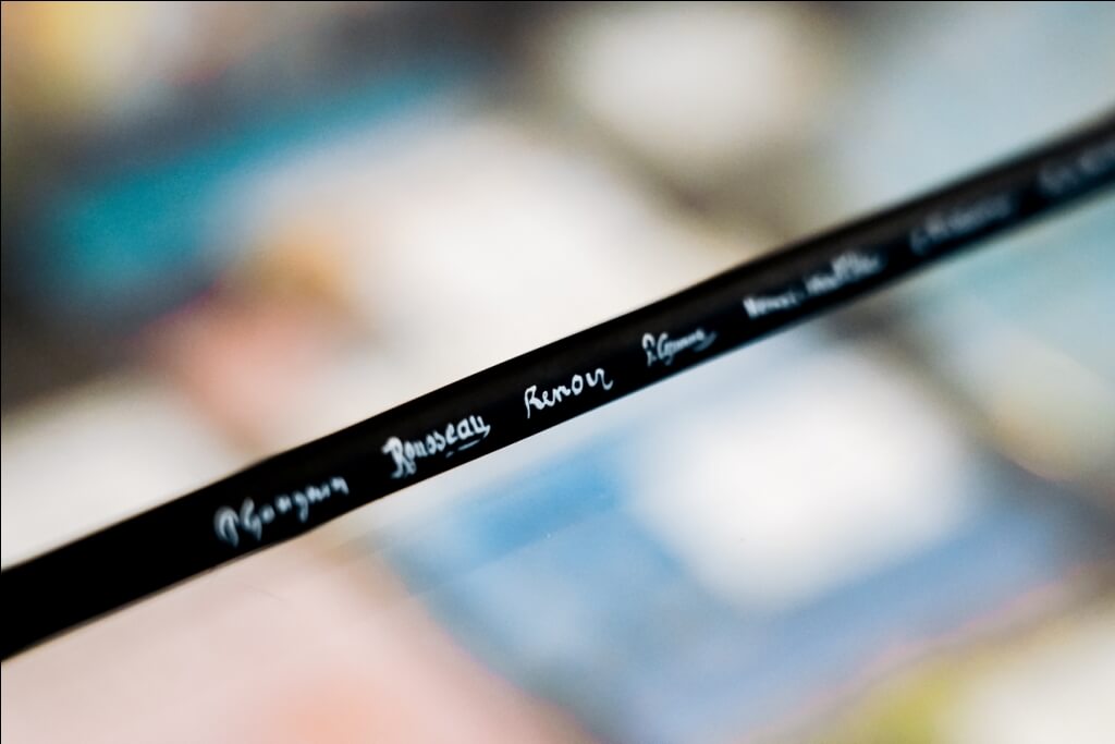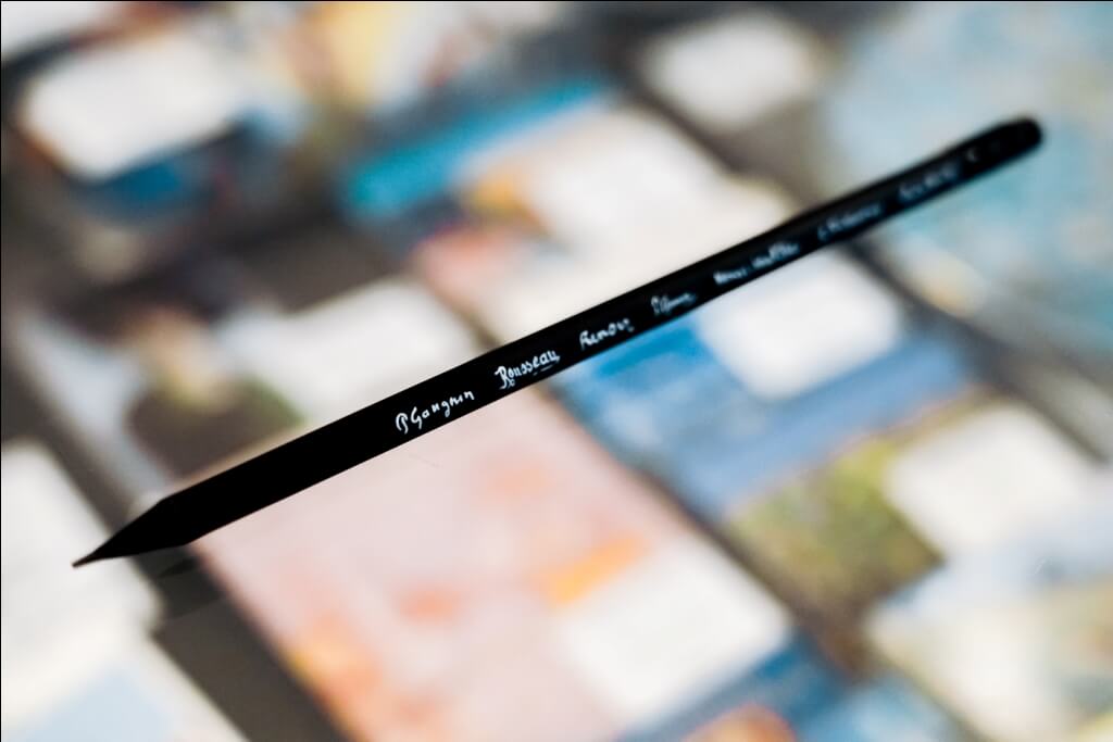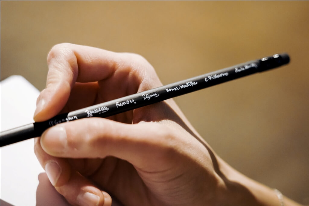 Черный карандаш с подписями художников – Анри Руссо, Пьер Огюст Ренуар, Анри Матисс, Поль Гоген, Поль Сезанн, Камиль Писсарро и Клод Моне.