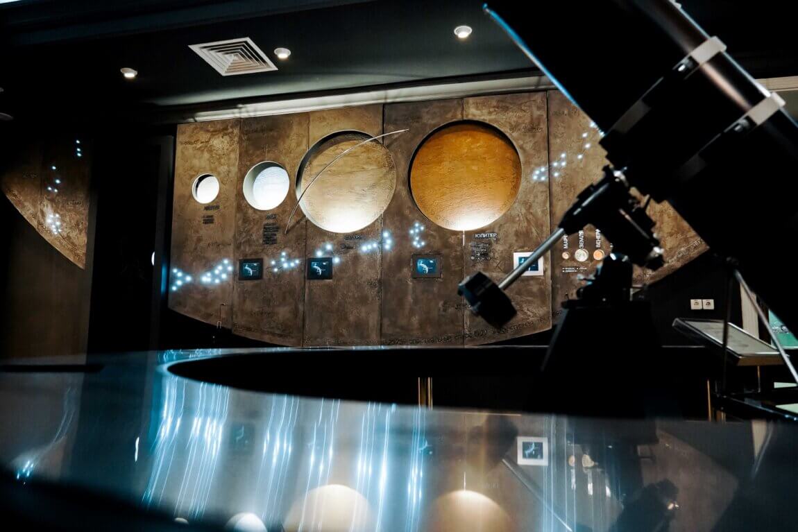 Коллекция метеоритов, интерактивный телескоп, космические весы позволят приобщиться к тайнам Вселенной. Сверкающие гранями кристаллов и отполированных срезов минералогические диковинки со всего света собраны в зале «Минералы Земли». Гипотезы возникновения жизни, древнейшие обитатели планеты, первые позвоночные животные и наземные растения, представлены в залах «Начало пути» и «Мир древней жизни». О черном золоте планеты расскажут коллекции образцов нефти и пород-коллекторов, действующая модель грязевого вулкана и интерактивная скважина. О полезных ископаемых Татарстана и способах их добычи можно узнать в зале «Кладовая недр».