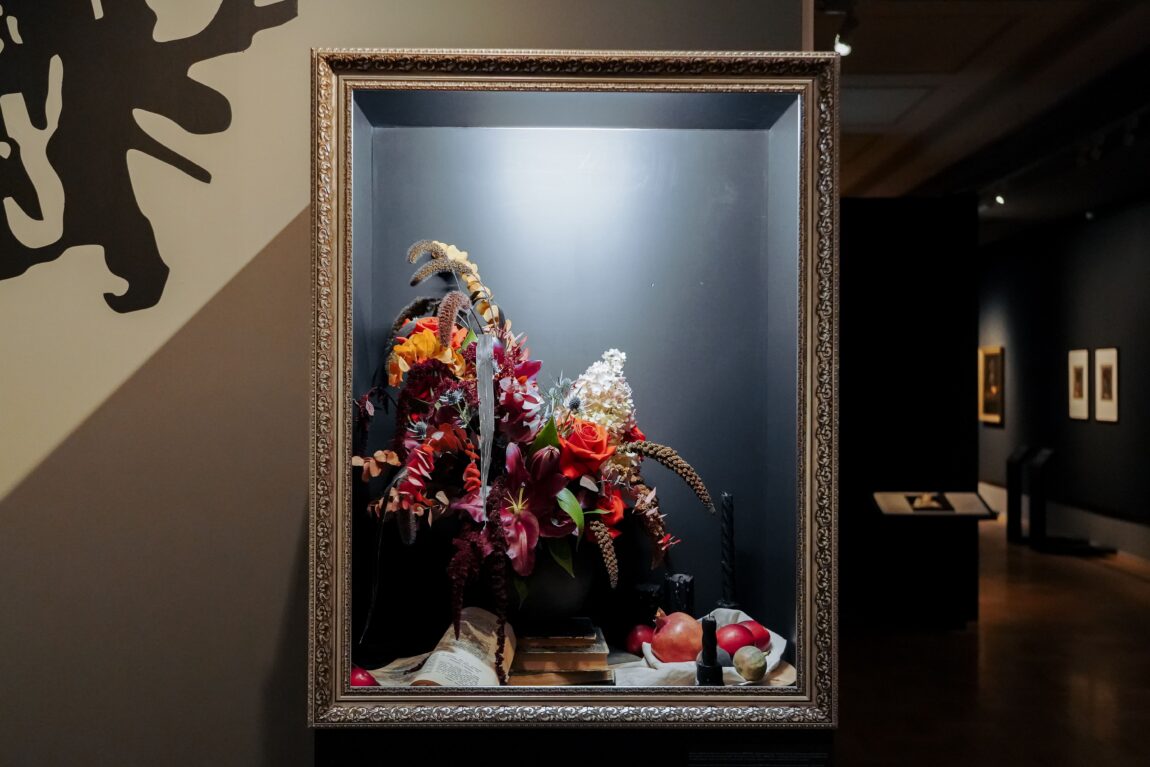 «MIN SIN» – команда профессиональных флористов, которые видят в цветах не просто растения, а способ передать самые глубокие чувства и эмоции. Вдохновившись цветочной темой в искусстве, команда «MIN SIN» создала антуражный экспонат – цветочную композицию-обманку, которая стала ярким арт-объектом, встречающим всех гостей выставки в Центре «Эрмитаж-Казань». Эта композиция, как и экспонаты выставки, играет с нашим восприятием, заставляя сомневаться в реальности. Увидеть цветочную композицию можно до 29 сентября в Центре «Эрмитаж-Казань». Каждую неделю она будет обновляться.