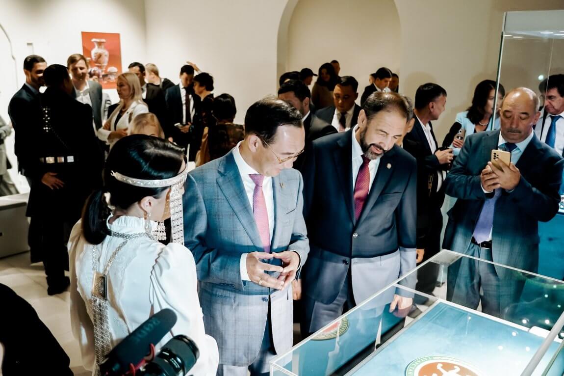 «Сегодня мы становимся свидетелями знаменательного события, встречи двух самобытных культур, двух регионов России, богатыми не только природными ресурсами, но и многовековыми традициями, уникальным духовным наследием. Якутия и Татарстан, несмотря на географическую отдаленность объединены общей историей, схожим стремлением сохранения национальной идентичности при развитии современных технологий и инноваций. Сегодня для нас большая честь принимать Вас в стенах Казанского Кремля, объекта всемирного наследия ЮНЕСКО. Выставка «Сокровища Якутии» — это прекрасная возможность для жителей, гостей Татарстана прикоснуться к удивительному миру культуры Республики Саха Якутия, увидеть уникальные произведения искусства от изящного серебра до бриллиантов и самородков. Мы уверены, что подобные культурные мосты укрепляют единство нашей страны, способствуют взаимопониманию, обогащают каждого из нас новыми знаниями и впечатлениями» – отметил Премьер-министр Республики Татарстан Алексей Песошин