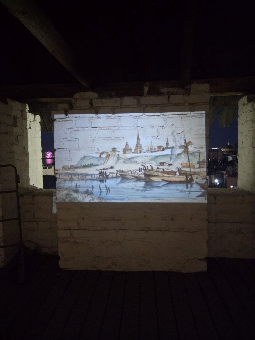 Благодаря технологиям искусственного интеллекта на пряслах, примыкающих к Консисторской башне, посетители увидят историю Казанского Кремля, его изменения и преображение, которые он хранит в себе.