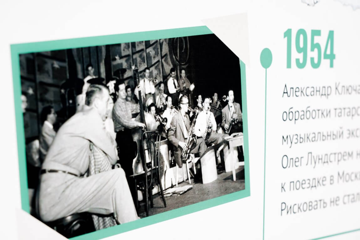 На сцене во дворе Присутственных мест Казанского Кремля открылась уличная выставка «Джаз звучит. Слышно даже в тишине», посвящённая многогранному миру казанского джаза. Проект приглашает жителей и гостей города погрузиться в атмосферу свободы, импровизации и ритма через призму феномена казанского джаза и судеб участников оркестра Олега Лундстрема, участники которого приехали в Казань из Китая в первой половине ХХ века.