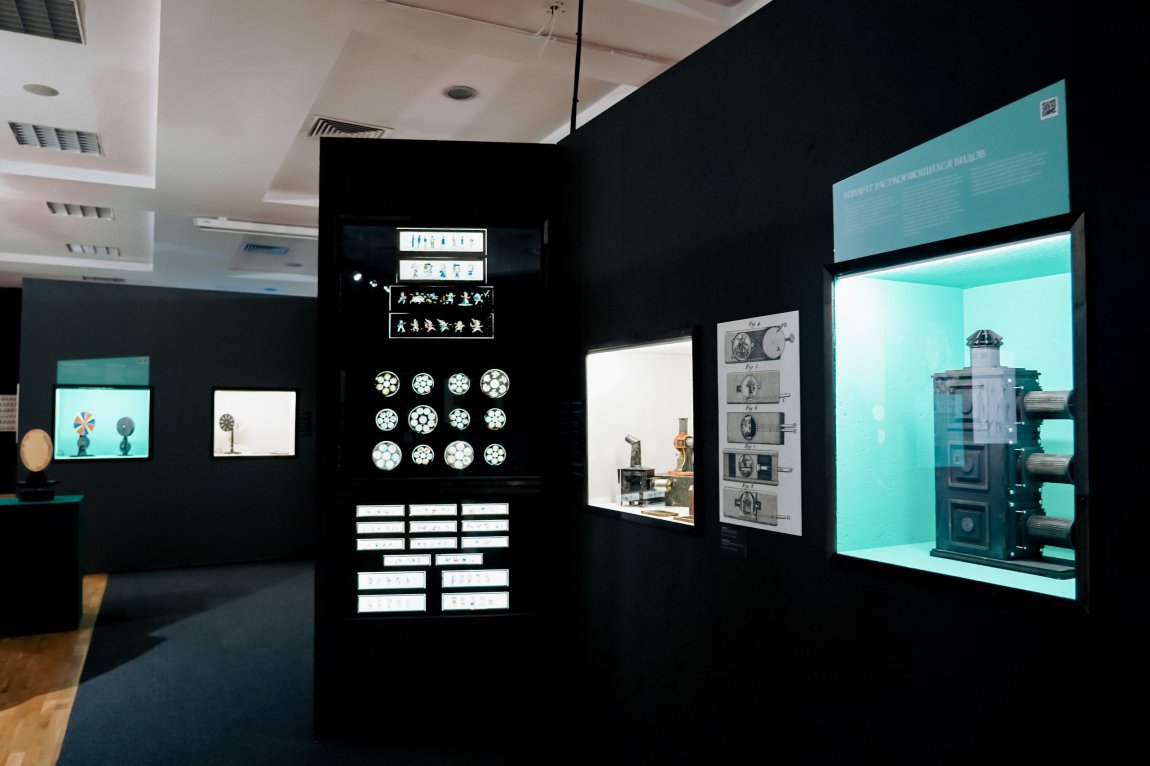 В залах «Манежа» представлено более 100 оригинальных приборов из коллекции «Мастерской братьев Васильевых» — крупнейшего в России собрания анимационных и оптических устройств. Среди экспонатов: