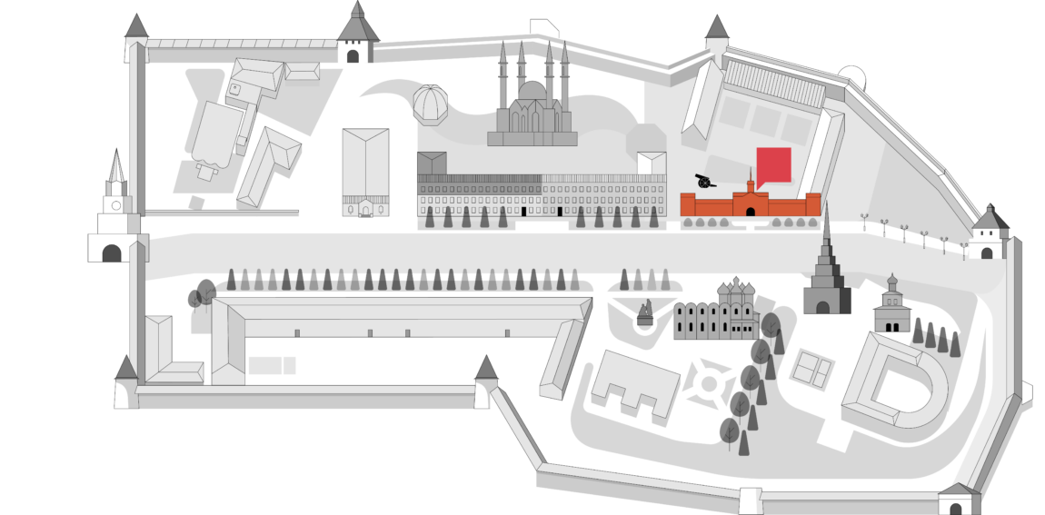 Фирменный магазин Казанского Кремля находится в 4 подъезде здания Присутственных мест. Здесь можно приобрести сувениры, книги для детей и взрослых, фирменные футболки и свитшоты, свечи и диффузоры с ароматами, созданными специально для Казанского Кремля.