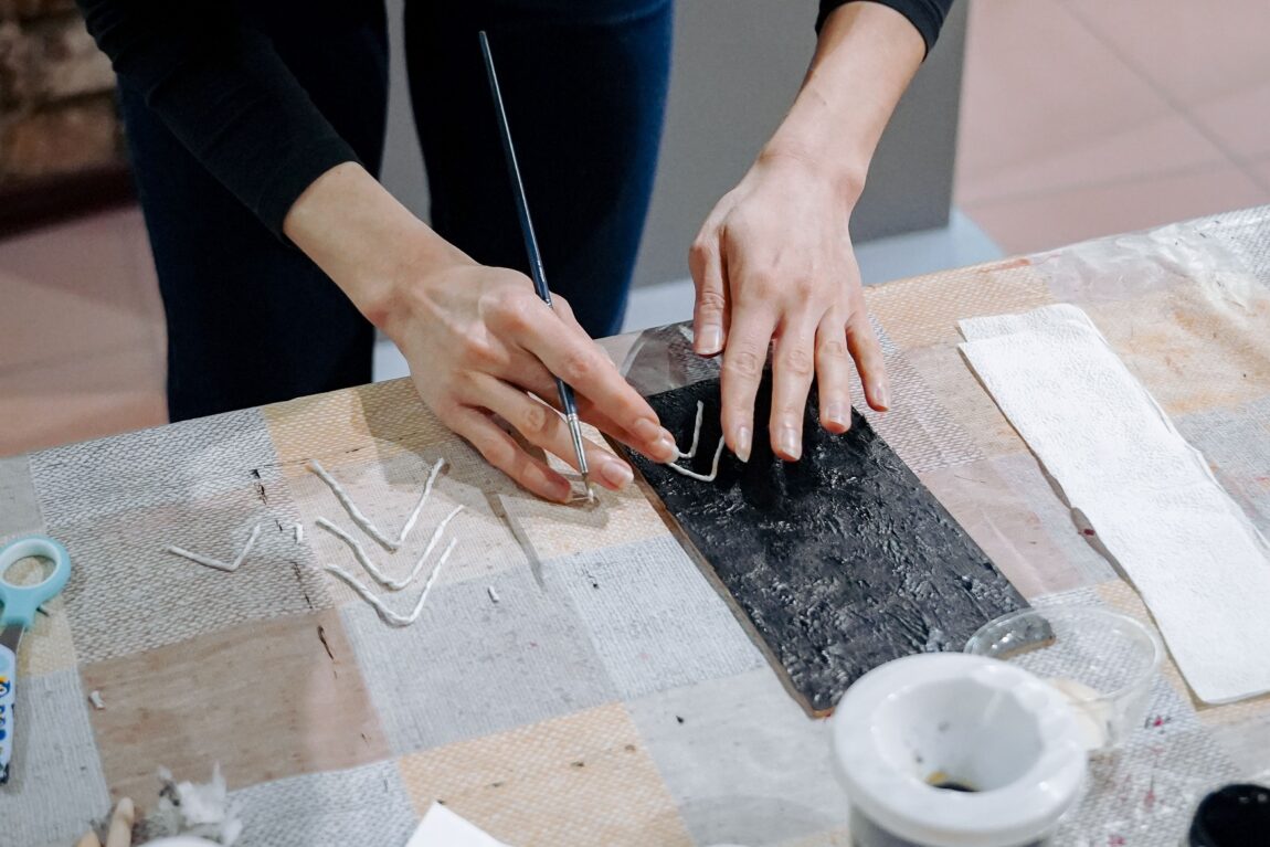 Произведение будет создано на основе элементов картин выставки «Авангард. На телеге в XXI век». Это значит, что вы не только получите удовольствие от творческого процесса, но и прикоснетесь к авангарду изнутри, экспериментируя с текстурами и формами.