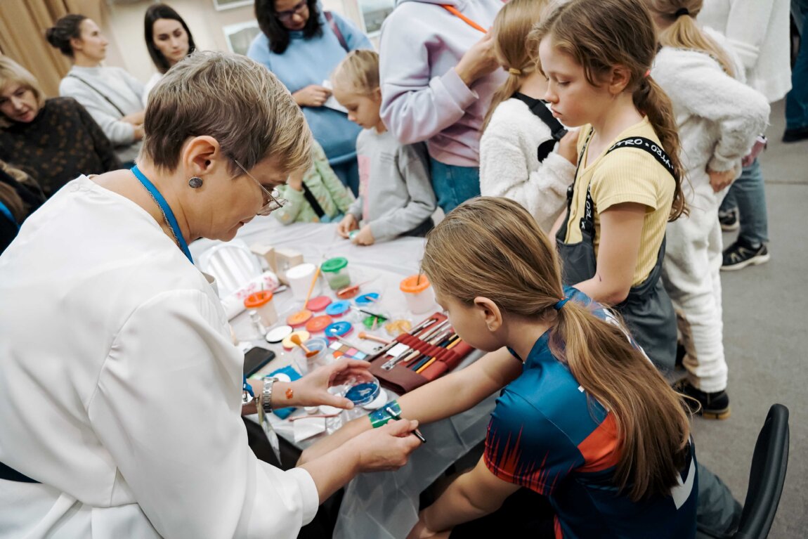 На стеклянных стаканчиках витражными красками участники нарисуют букеты цветов и памятную надпись «Любимой маме», «Дорогой бабушке», «На память сестричке».