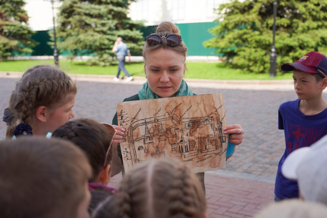 «Хәзинә эзләү» маҗаралы уены – Казан Кирмәне белән таныштыру экскурсиясенең мәктәп яшендәге балалар өчен мавыктыргыч итеп эшләнелгән төре. Заманалар чуала, борынгы риваятьләр калкып чыга һәм яңа белемнәр туа. Кирмәннең борынгы картасы белән танышып Кол Шәриф мәчете, Благовещение соборы, Сөембикә манарасы һәм Пушечный дворны күргәч, яшерен тамга һәм хатлар сезне хәзинә яшерелгән урынга алып киләчәк. Сандык эчендәге байлык хәзинә эзләүчеләр арасында бүленәчәк!