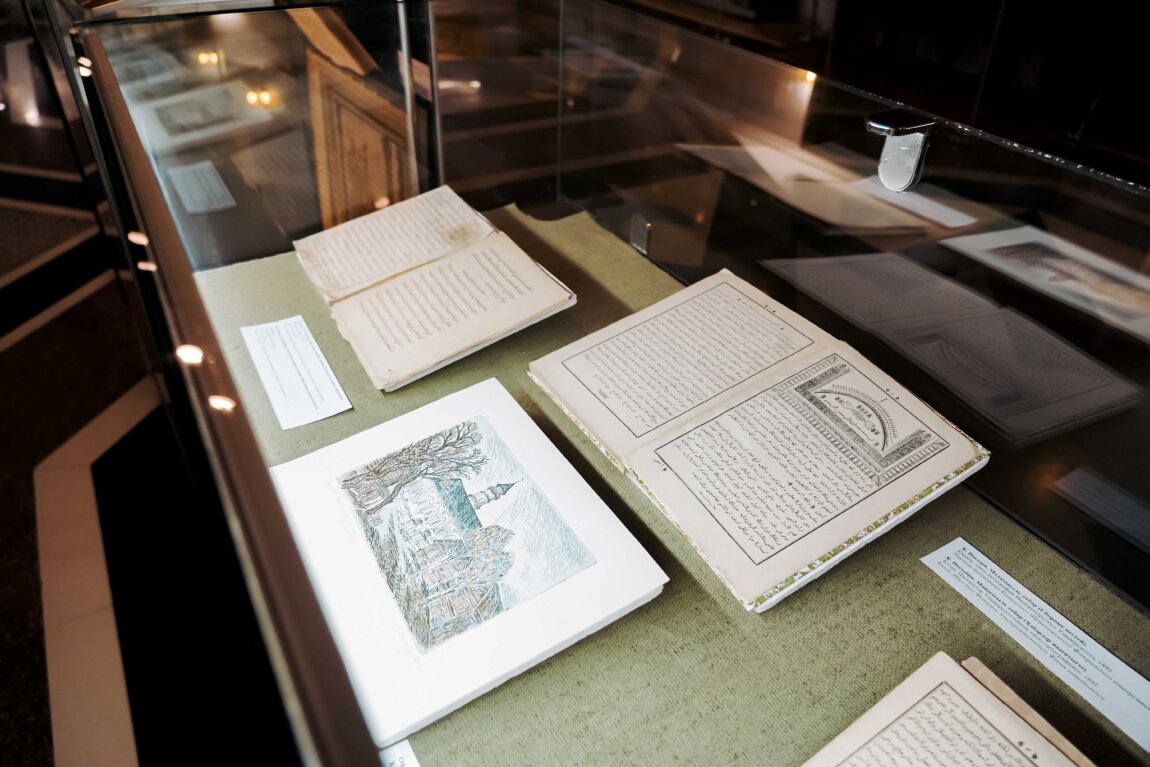 Күргәзмәнең нигезен К(и)ФУ фәнни китапханәсеннән Каюм Насыйриның кулъязмалары һәм китаплары тәшкил итә. Сүзлекләр, дәреслекләр һәм географик карталар бу тынмас ьанлы даһиның төрле яклары белән таныштыра. Күргәзмә экспонатлары арасында: балалар өчен уку өчен беренче альманахлар («Буш вакыт», 1867), беренче татар энциклопедиясе («Фәвакиһел җөләсе», 1884), чирек гасырдан артык чыккан беренче татар медиалары календарьлары һәм этнография, тарих, дини фикер, медицина буенча Каюм Насыйриның башка оригиналь әсәрләре бар. Каюм Насыйриның кайбер дини әсәрләрендә «Мифтах әл-Коръан» конкордансы кулъязмасы – мөселманнарның изге китабының беренче сүзлек белешмәсе бирелә.
