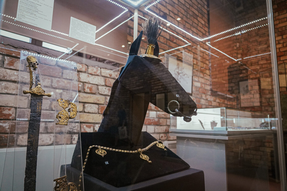 Күргәзмәдә тәкъдим ителгән 200 дән артык экспонат арасында безнең эрага кадәр VIII гасырдан алып безнең эраның XXI гасырына кадәр булган адыг сугышчысы киемнәре, сугышчының аты өчен кирәк-яраклар, төрле археологик һәм тарихи чорларның салкын һәм утлы кораллары бар.
