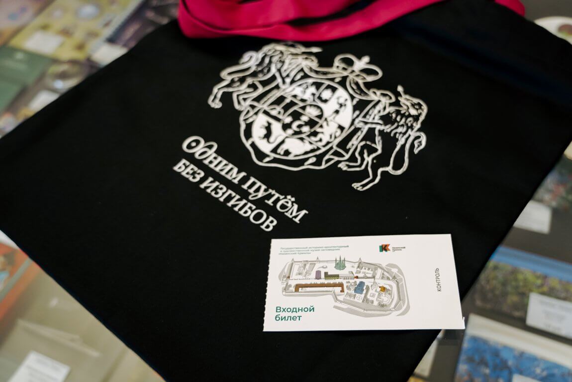 В сувенирном киоске Центра «Эрмитаж-Казань» продаётся шопер с гербом и девизом рода Юсуповых, который теперь является приглашением на выставку «Юсуповы. Роскошь сквозь века».